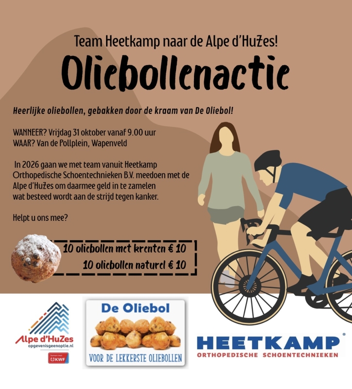 Om ons streefbedrag te behalen organiseren wij diverse sponsoracties. De eerste vindt plaats op vrijdag 31 oktober vanaf 9.00 uur op het Van de Pollplein in Wapenveld: een heerlijke oliebollenactie! Kom langs voor versgebakken oliebollen van De Oliebol en steun daarmee het KWF.
